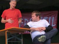 Chor singt 3. Lied: "Halleluja" - FREISTIL: Einstudierte Szene: Ein Mann schläft, wird wach von seiner heimkehrenden Frau, macht ihr Vorwürfe. Nach einem Streit und einer Diskussion legt sie sich zu ihm. Er schläft ein, sie geht wieder weg. Er wacht auf und ist sauer. "Ich hab dir doch gesagt, daß du mich wecken sollst, bevor du gehst!"